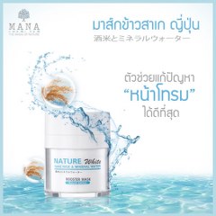 MANA Skincare มานา เนเจอร์ไวท์ บูสเตอร์มาส์ก มาส์กเข้มข้นบำรุงล้ำลึก ให้ผิวขาว กระจ่างใส เนียนนุ่มละเอียด เพียงข้ามคืน สูตรอ่อนโยน คิดค้นสำหรับผู้ที่บอบบาง อ่อนแอ ผิวแพ้ง่าย ด้วยการคัดสรรสารสกัดธรรมชาติ เป็นอาหารผิวชั่นเลิศ “ข้าวสาเก” และ “น้ำแร่ธรรมชาติ” จากญี่ปุ่น SAKE-RICE KOKEN สารสกัด 'ข้าวสาเกญี่ปุ่น' จากแคว้นมิเอะที่มีชื่อเสียงด้านการปลูกข้าวสาเกคุณภาพสูงที่สุดในญี่ปุ่น มีกรดอะมิโน โพลี่เปปไทด์ และโปรตีนกว่า 30 ชนิดนับเป็นอาหารผิวชั้นเลิศที่ช่วยปรับสภาพผิวให้แข็งแรงขาว กระจ่างใส และช่วยผลัดเซลล์ผิวเก่าซึ่งมีฤทธิ์ต่อต้านอนุมูลอิสระ ช่วยให้สุขภาพผิวแข็งแรง ผิวดูเด็กลง
